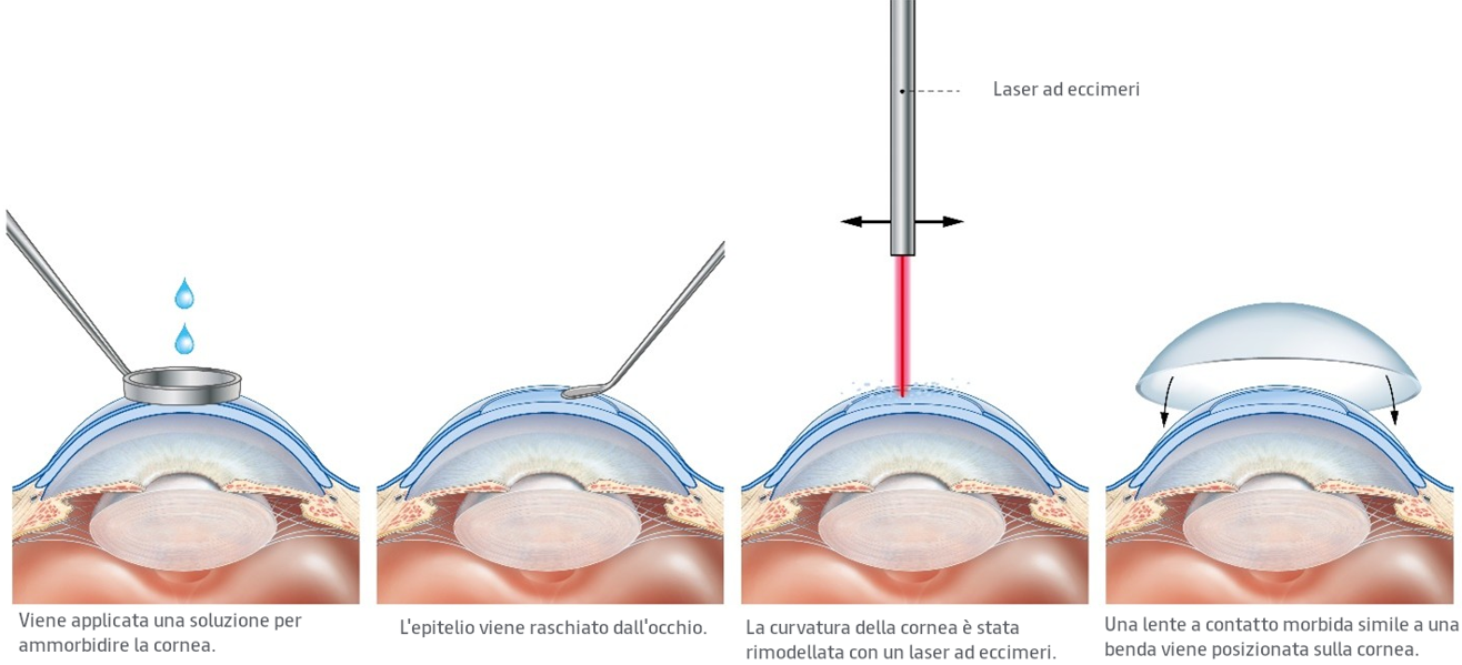 - La correzione laser della vista non richiede l'impianto di una lente e funziona alterando la curvatura e la potenza di messa a fuoco della superficie anteriore dell'occhio