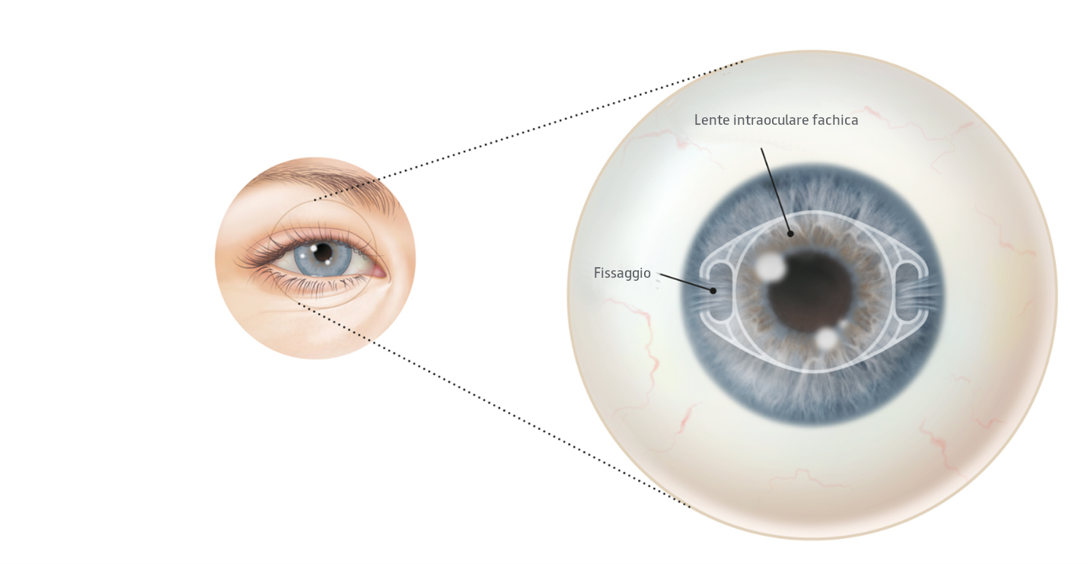 Le lenti che vengono impiantate nell'occhio per correggere la vista senza rimuovere la lente naturale sono chiamate lenti intraoculari fachiche (PIOL). Le PIOL sono realizzate in plastica sintetica trasparente. Si posizionano appena davanti o appena dietro la pupilla, un po' come se si inserissero le lenti a contatto negli occhi.