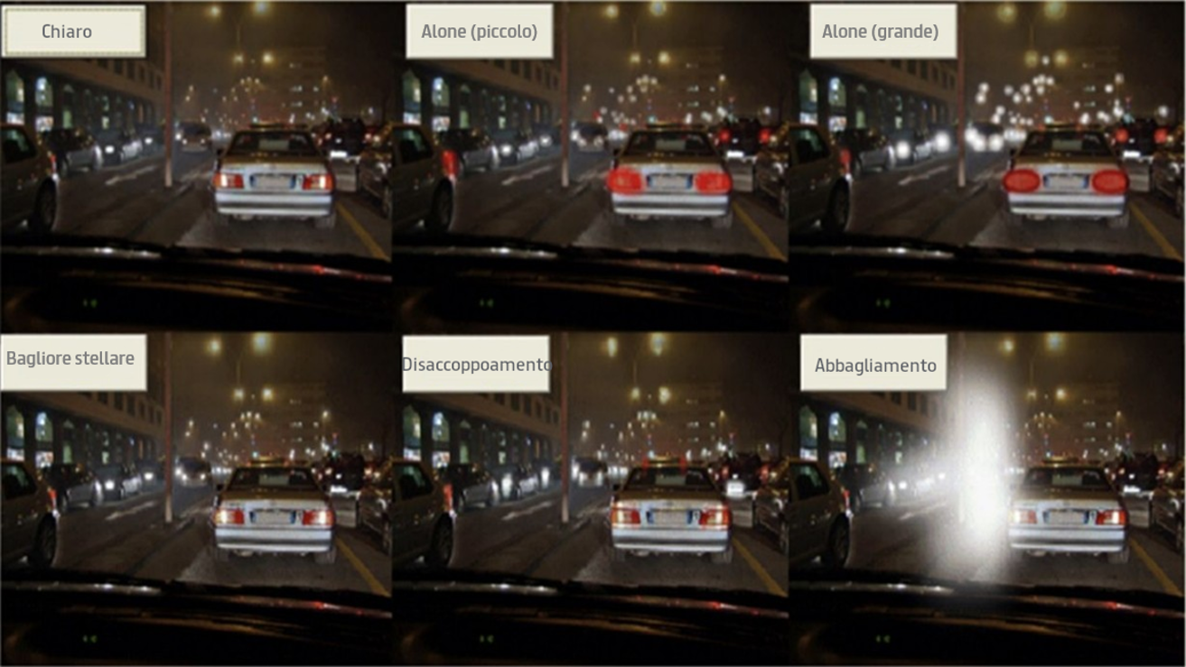 È normale avvertire alcuni effetti collaterali di dispersione della luce nel periodo immediatamente successivo all'impianto di PIOL, in particolare se la prescrizione di occhiali molto elevata. Questi possono assumere varie forme, tra cui abbagliamento, aloni, bagliori e immagini fantasma. Un sintomo comune è l'aumento dei riflessi dei fari delle auto in arrivo e all'inizio può essere difficile guidare di notte.