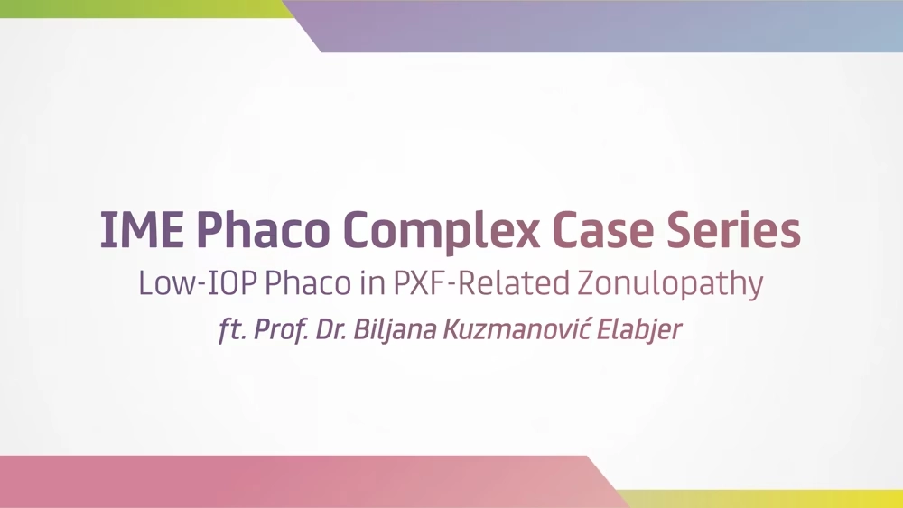 In this episode of the ESCRS IME Phaco Complex Case series, Dr. Biljana Kuzmanović Elabjer reviews a cataract surgery with advanced pseudoexfoliation (PXF) syndrome featuring a dense black cataract, phacodonesis, a small rigid pupil, and a shallow anterior chamber in an 85-year-old patient. She outlines her step-by-step surgical approach and postoperative outcomes, highlighting how low-IOP strategies can help reduce iris trauma, corneal edema, endothelial cell loss, and inflammation in PXF eyes. Don’t miss the other complex case in this insightful series!