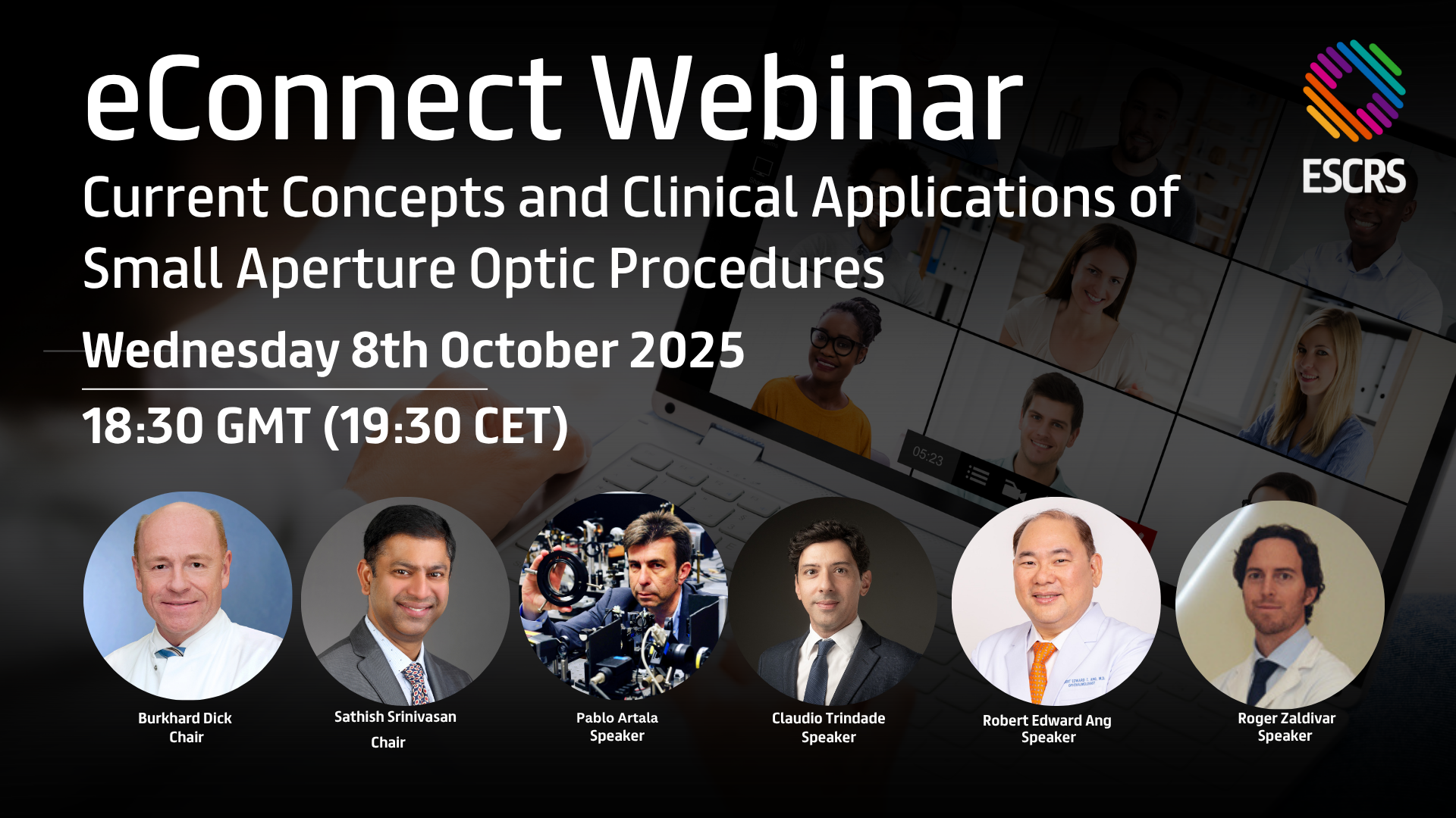 We are pleased to invite you to a new edition of the ESCRS eConnect webinar dedicated to the role of small aperture optic surgical procedures in modern ophthalmology practice. From intraocular lenses and corneal inlays to pupilloplasty, this session will explore both the underlying science and real-world clinical experience behind these innovative solutions. Our panel of speakers will share insights into indications, patient selection, visual outcomes, and known complications associated with them. Whether you’re already familiar with these procedures or just beginning to explore their potential, this webinar offers a valuable opportunity to deepen your knowledge and stay current with the latest advancements.
