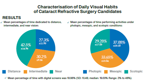 On average, presbyopic patients spend more than twice as much time involved in activities requiring near and intermediate vision than distance-vision activities and in mesopic conditions 34% of the time, according to a study by Professor Filomena Ribeiro and colleagues.1 An ESCRS clinical survey also shows these patients are most likely to complain about the lack of intermediate-range vision after receiving presbyopia-correcting intraocular lenses (PCIOLs).2