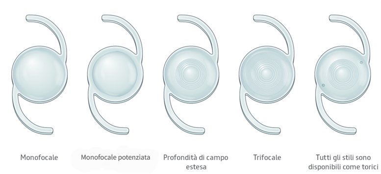 - IOL monofocali potenziate e EDOF - mirano a ridurre la dipendenza dagli occhiali per la visione a distanza e intermedia.